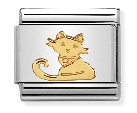 Nomination Gold Sitting Cat 030112-32 -korupala on valmistettu hopeanvärisestä ruostumattomasta teräksestä ja sen symboli on 18k kultaa. Nomination -korupaloille myönnetään kahden vuoden takuu ja ne toimitetaan valmistajan alkuperäisessä pakkauksessa!