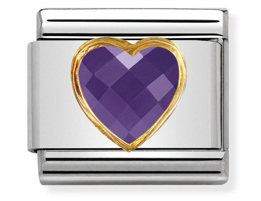 Nomination Gold Violet 030610-001 -korupalaan on istutettu violetti sydämen muotoinen Swarovskin zirkonia-korukivi. Pala on valmistettu hopeanvärisestä ruostumattomasta teräksestä ja 18k kullasta. Nomination -korupaloille myönnetään kahden vuoden takuu ja ne toimitetaan valmistajan alkuperäisessä pakkauksessa!