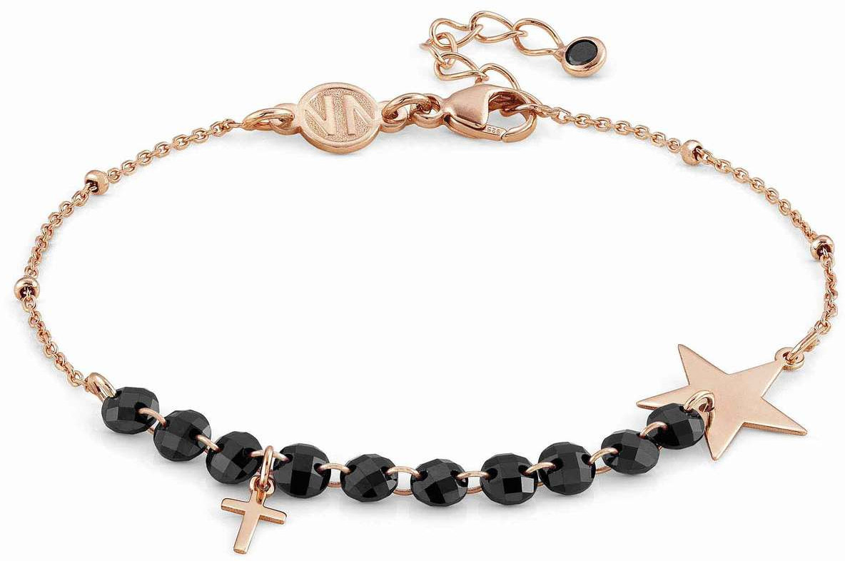 22 karaatin ruusukullatussa Nomination Melodie 147700/004-rannekorussa useita mustia kristalleja, ja tähti- ja ristiriipus. Ketju on säädettävissä 16,5-18,5 cm pituuteen. Korun lukkoa koristaa Swaroskin kristalli. Italialaiset Nomination-korut toimitetaan valmistajan alkuperäisessä pakkauksessa.