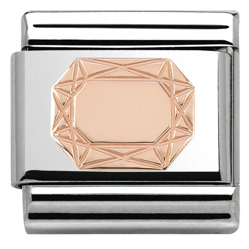 Nomination Rose Gold 430104-20. Nomination RoseGold palat on valmistettu laadukkaasta ruostumattomasta teräksestä ja 9 karaatin punakullasta. Nomination paloille myönnetään kahden vuoden takuu!