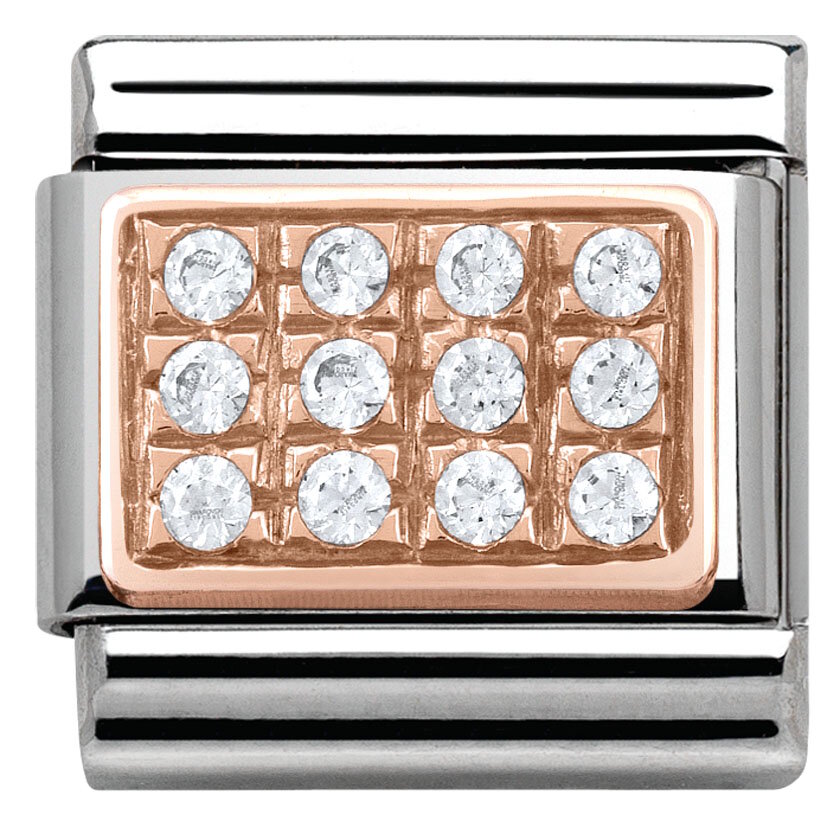Nomination Rose Gold 430302 01 palassa on kolmessa rivissä kirkkaita zirconioita. Tämä pala kuuluu Nominationin punakulta kokoelmaan ja se on valmistettu ruostumattomasta teräksestä ja 9 karaatin punakullasta. Nomination paloille myönnetään kahden vuoden takuu.