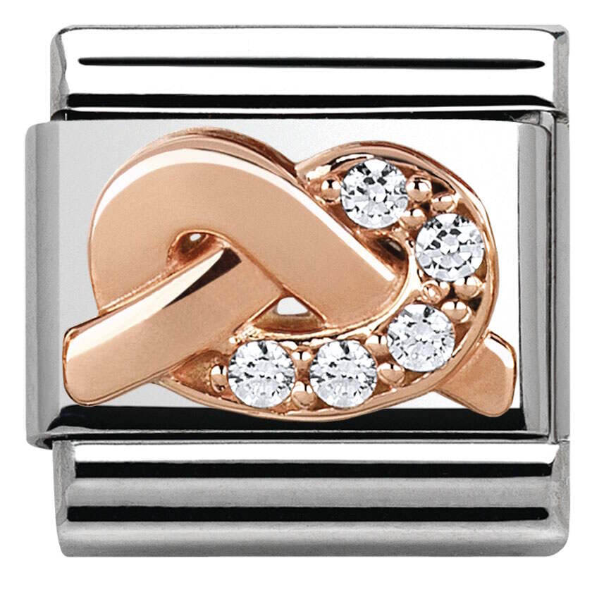 Nomination Rose Gold 430302-06 Spirituality. Hengellisyyden symboli, jokainen solmu on lupaus. Nomination palat ovat valmistettu laadukkaasta ruostumattomasta teräksestä ja 9k punakullasta. Palaan on istutettu kirkkaita zirkoneja tuomaan säihkettä. Nomination paloille myönnetään kahden vuoden takuu!