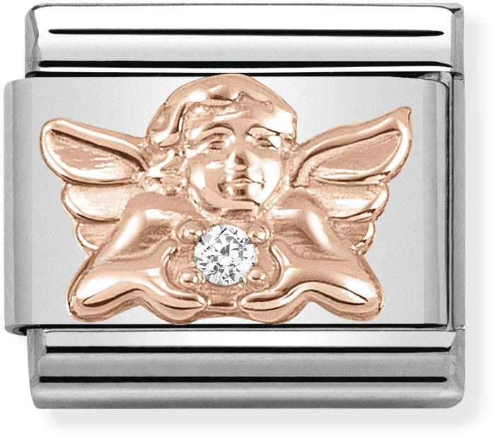 Pidä perhe lähelläsi. Nomination Rose Gold Angel of Family 430302-17 -korupala on taiteiltu ruostumattomasta teräksestä, 9 kt punakullasta ja valkoisesta korukivestä. Tämän malliston taivaalliset symbolit ovat kaunis tapa ilmaista juuri sinun elämänkatsomustasi ja tärkeimpiä arvojasi.