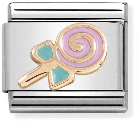 Nomination Rose gold Lollypop 430203-06-korupalassa on kauniit vihreän ja vaaleanpunaiset sävyt, jotka on maalattu emalivärein ja 9 karaatin ruusukultaus. Korupala on valmistettu ruostumattomasta teräksestä. Nomination-paloille myönnetään kahden vuoden takuu.