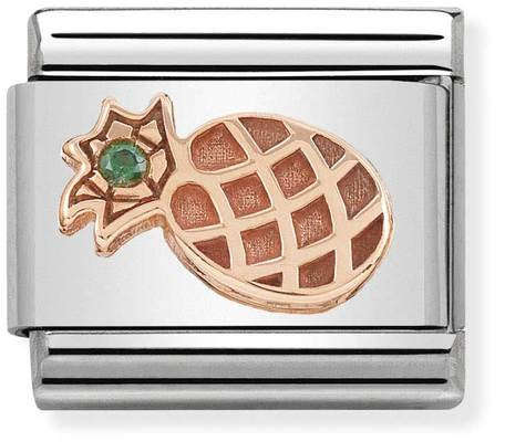 Nomination Rose Gold Pineapple 430305-30 -helassa on on aiheena ananas. Palan runko on valmistettu ruostumattomasta teräksestä ja ruusukullan värinen osa on 9 karaatin ruuskultaa. Kivet ovat zirconioita. Nomination-paloille myönnetään kahden vuoden takuu.