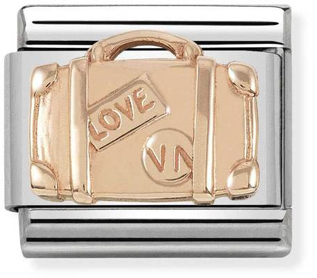 Nomination Rose Gold Suitcase 430102-07 -helaa koristaa 9 karaatin ruusukullasta valmistettu matkalaukku. Palan runko on valmistettu ruostumattomasta teräksestä. Nomination-paloille myönnetään kahden vuoden takuu.