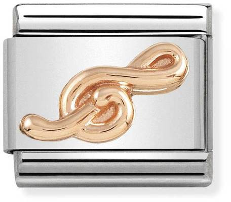 Nomination Rose gold Treble clef 430106-13-korupalaa koristaa 9 karaatin ruusukullasta valmistettu G-nuottiavain. Pala on valmistettu ruostumattomasta teräksestä. Nomination-paloille myönnetään kahden vuoden takuu.