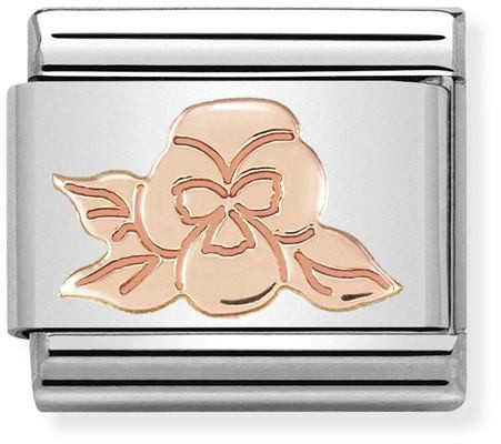 Luontoaiheiset Nomination Rose Gold -palat tuovat keräilykoruusi raikkautta ja kesäistä kepeyttä. Violet 430104-24 -mallissa kukkii ihastuttava orvokki. Tämä hurmaava korupala on loihdittu ruostumattomasta teräksestä ja 9 kt punakullasta.
