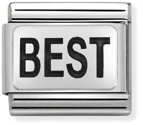 Nomination SilverShine BEST 330109-27 hela. Pala on valmistettu ruostumattomasta teräksestä ja hopeasta, ja koristeltu emalimaalein. Nomination-paloille myönnetään kahden vuoden takuu.