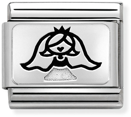Nomination SilverShine Bride 330208-41 hela. Palassa on kuvailtu morsian hääpuvussaan. Pala on valmistettu ruostumattomasta teräksestä ja hopeasta, ja koristeltu emalimaalein. Nomination-paloille myönnetään kahden vuoden takuu.