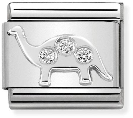 Nomination Silvershine -mallistosta löydät ranteeseesi mitä persoonallisimmat hahmot - niin todenmukaiset kuin kuvitteeellisetkin. Brontosaurus with CZ 330311-09 -korupalassa komeilee pitkäkaulainen dinosaurus. Tämä malli on taiteiltu ruostumattomasta teräksestä, sterling-hopeasta ja kirkkaista zirkonioista.
