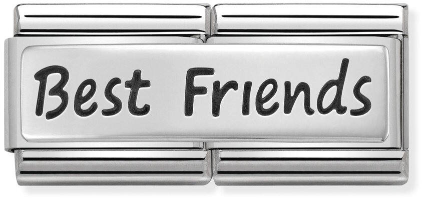 Nomination SilverShine double 330710-03 Best friends. Nomination SilverShine palat on valmistettu laadukkaasta ruostumattomasta teräksestä ja 925-Sterling hopeasta. Teksti on kirjailtu mustalla. Nomination paloille myönnetään kahden vuoden takuu!