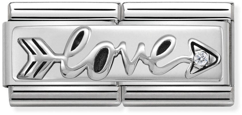 Nomination SilverShine double 330730-02 Love. Nomination SilverShine palat on valmistettu laadukkaasta ruostumattomasta teräksestä ja 925-Sterling hopeasta. Palaan on istutettu säihkyvä zirkonia nuolen terään. Nomination paloille myönnetään kahden vuoden takuu!