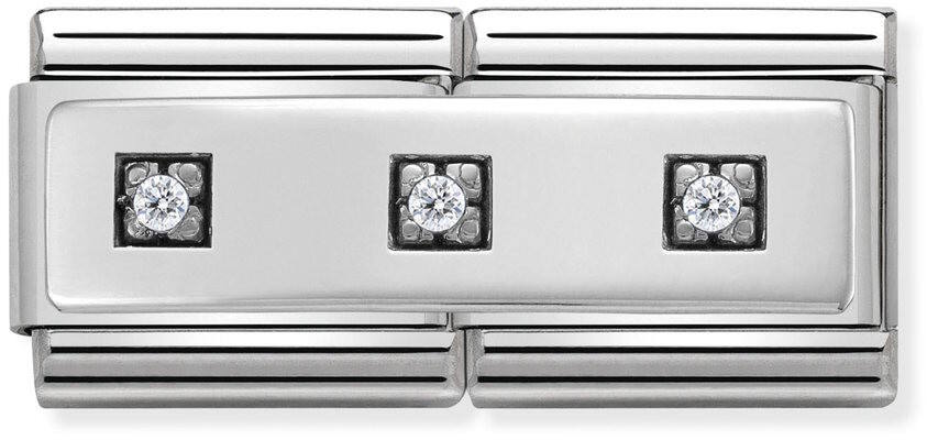 Nomination SilverShine double 330731-01. Nomination SilverShine palat on valmistettu laadukkaasta ruostumattomasta teräksestä ja 925-Sterling hopeasta. Palaan on istutettu säihkyviä zirkoneja. Nomination paloille myönnetään kahden vuoden takuu!