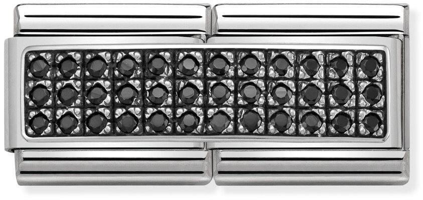 Nomination SilverShine double 330733-10 Black zircon. Nomination SilverShine palat on valmistettu laadukkaasta ruostumattomasta teräksestä ja 925-Sterling hopeasta. Pala tuo koruusi upeaa ilmettä mustilla zirkoneillaan. Nomination paloille myönnetään kahden vuoden takuu!