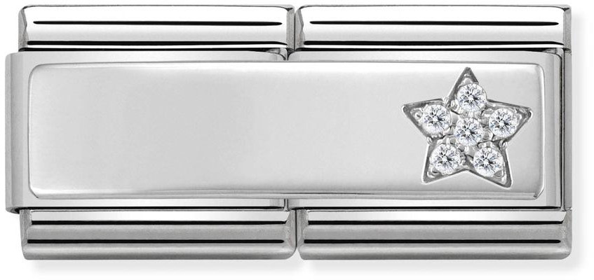 Kurkota tähtiin! Nomination Silvershine Double Star with CZ 330731-10 -tuplakorupala on taiteiltu ruostumattomasta teräksestä, sterling-hopeasta ja kirkkaista zirkoniakivistä. Kauniit symbolit ovat kuin lukuja päiväkirjasta, kuvaillen ajatuksia, tunteita ja elämän suuria hetkiä.