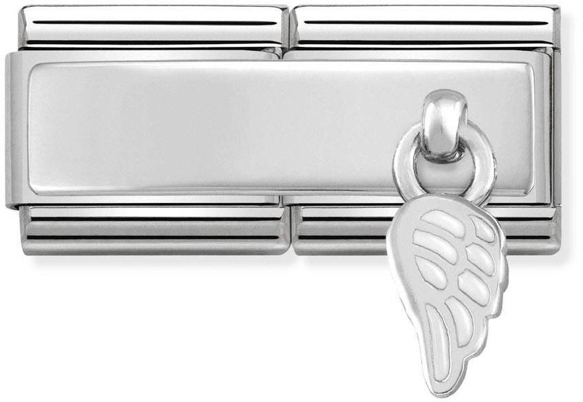 Kaiverrusmahdollisuutensa ansiosta tämä valkoisella siivellä koristeltu Nomination Silvershine Double White Wing 330780-01 -pala on juuri niin persoonallinen kuin sinä itse päätät! Ruostumattomasta teräksestä ja sterling-hopeasta valmistettuun palaan on kaiverrettavissa max. 10 merkkiä (esim. nimikirjaimet ja päivämäärä). Valitse ensin kaiverrus ja kaiverruksessa käytettävä tekstityyli ja kirjoita kaiverrettavat tiedot "kaiverrettava teksti" -kenttään. Huom! Kaiverretuilla tuotteilla ei ole palautusoikeutta!