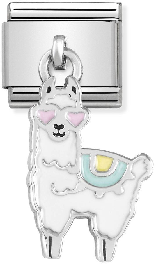 Roikkuvat symbolit ovat Nomination-keräilykorujen vetovoimaisimpia tähtiä! Silveshine-mallistoon kuuluvassa Llama 331805-14 -palassa kulkee mukana kirkkain emalivärein koristeltu, sterling-hopeasta muotoiltu laama.