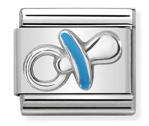 Nomination SilverShine Pacifier Light Blue 330202-40 -korupala on valmistettu hopeisesta ruostumattomasta teräksestä ja symboli on 925-Sterling hopeaa. Symbolin kaiverrusta on myös koristeltu vaaleansinisellä emalilla. Nomination -korupaloille myönnetään kahden vuoden takuu ja ne toimitetaan valmistajan alkuperäisessä pakkauksessa!