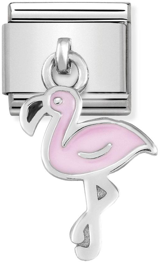 Roikkuvat symbolit ovat Nomination-keräilykorujen vetovoimaisimpia tähtiä! Silveshine-mallistoon kuuluvassa Pink Flamingo 331805-12 -palassa kulkee mukana vaaleanpunaisella emalilla värjätty, sterling-hopeasta muotoiltu flamingo.