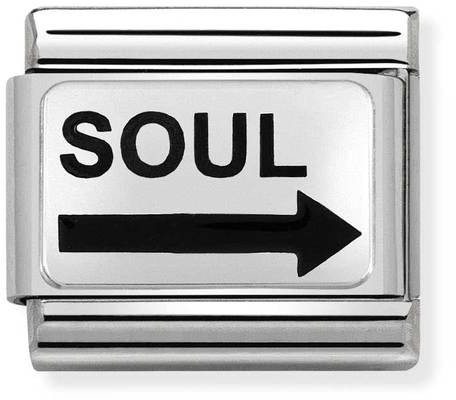 Nomination SilverShine Soul arrow 330208-22-korupalassa lukee "sielu" ja sitä voi käyttää yksinään tai liitettynä muihin sana- tai symbolipaloihin muodostamaan laajempia kokonaisuuksia. Pala on valmistettu ruostumattomasta teräksestä ja hopeasta, ja koristeltu emalimaalein. Nomination-paloille myönnetään kahden vuoden takuu.