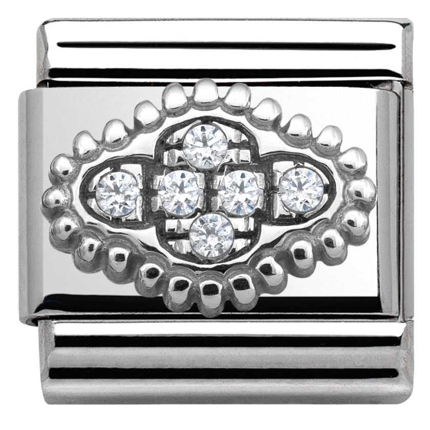 Nomination 330316-01 pala on valmistettu laadukkaasta ruostumattomasta teräksestä, 925-Sterling hopeasta ja kirkkaista zirkonioista. Nomination paloille myönnetään kahden vuoden takuu.