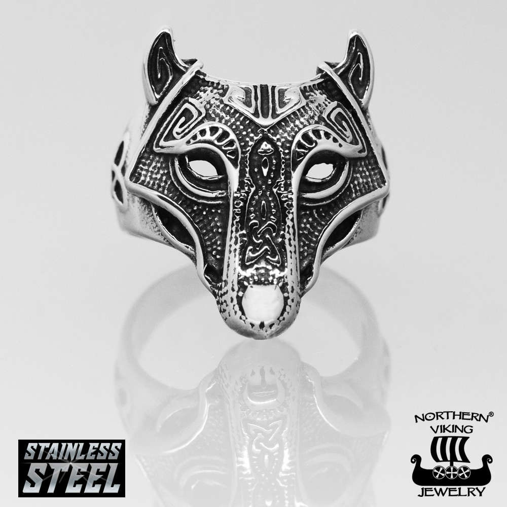 316L kirurginteräksestä valmistettu Northern Viking Jewelry Guardian Wolf NVJSO019 on tyylikäs miesten sormus. 13 grammaa painava sormus on edestä 2,2 cm leveä ja 2,1 cm korkea. Guardian Wolf -sormuksessa on iso sudenpää, ja sen sivuissa on kelttisolmu. Sormusta on saatavilla viidessä eri koossa 19-22,5 mm väliltä. Sormus toimitetaan uniikissa Northern Viking Jewelry® -juuttipussissa.