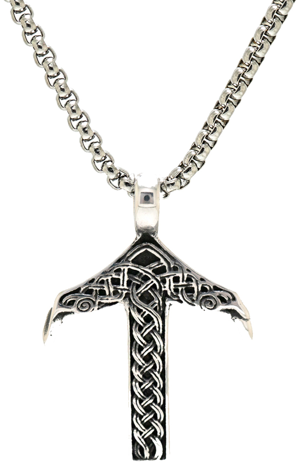 Northern Viking Jewelry Tyr -kaulakorussa komeilevat Odinin ylväät korpit Hugin ja Munin. Nämä skandinaavisessa mytologiassa esiintyvät olennot symboloivat ajatusta ja muistia. Koru on valmistettu huippulaadukkaasta kirurginteräksestä ja sen ketjulla on mittaa 55 cm. Itse riipuksen pituus on 46 mm. Koru toimitetaan tyylikkäässä Northern Viking Jewelry -juuttipussissa. Tuotenumero NVJRS080.