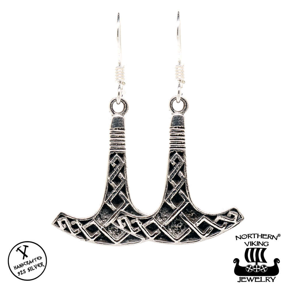 925 sterling-hopeasta valmistetut Northern Viking Jewelry Ukonvasara NVJKK027 -korvakorut ovat 2,2 cm korkeita ja 1,9 cm leveitä. Korvakoruissa on helppokäyttöinen koukkukiinnitys. Korvakorut toimitetaan uniikissa Northern Viking Jewelry® -juuttipussissa.