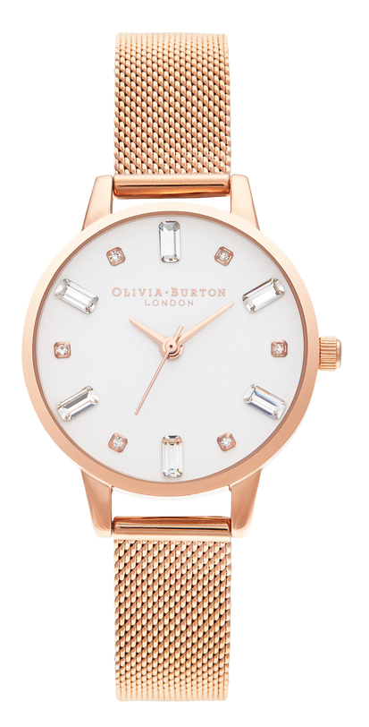 Olivia Bejewelled Rose gold OB16BJ02-kellossa on huomiotaherättävän valkoinen kellotaulu, jota koristavat aidot Swarovskin briljantti- ja baguettehiotut kristallit. Kellon ruusukullanvärinen runko leveydeltään 34 mm:iä, ja 2 mm leveä mesh-ranneke on säädettävissä max. 20 cm pituuteen. Olivia Burton -kelloilla on 2 vuoden takuu, ja ne toimitetaan valmistajan alkuperäisessä rasiassa.