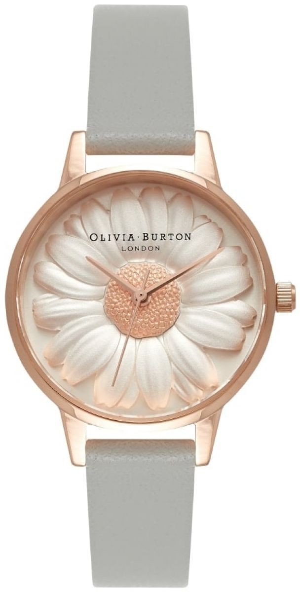 Kukkakuvioidut Olivia Burton -tuotteet vievät sinut takaisin 60-luvulle! 3D Daisy Grey & Rose Gold -mallissa kellotaulu on upean kolmiulotteinen. Punakullan värinen teräsrunko on halkaisijaltaan 30 mm ja sen sisältä löytyy laadukas japanilainen koneisto. Harmaa nahkaranneke tuo kokonaisuuteen tyylikkään loppusilauksen.