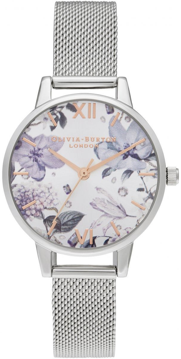 Kukkakuvioidut Olivia Burton -tuotteet vievät sinut takaisin 60-luvulle! Bejewelled Florals Midi Silver Mesh & Rose Gold -mallissa kellotaulu on upean värikäs ja eläväinen. Ruostumaton teräsrunko on halkaisijaltaan 30 mm ja sen sisältä löytyy laadukas japanilainen koneisto. Kokonaisuuden kruunaa hopeanvärinen mesh-ranneke.