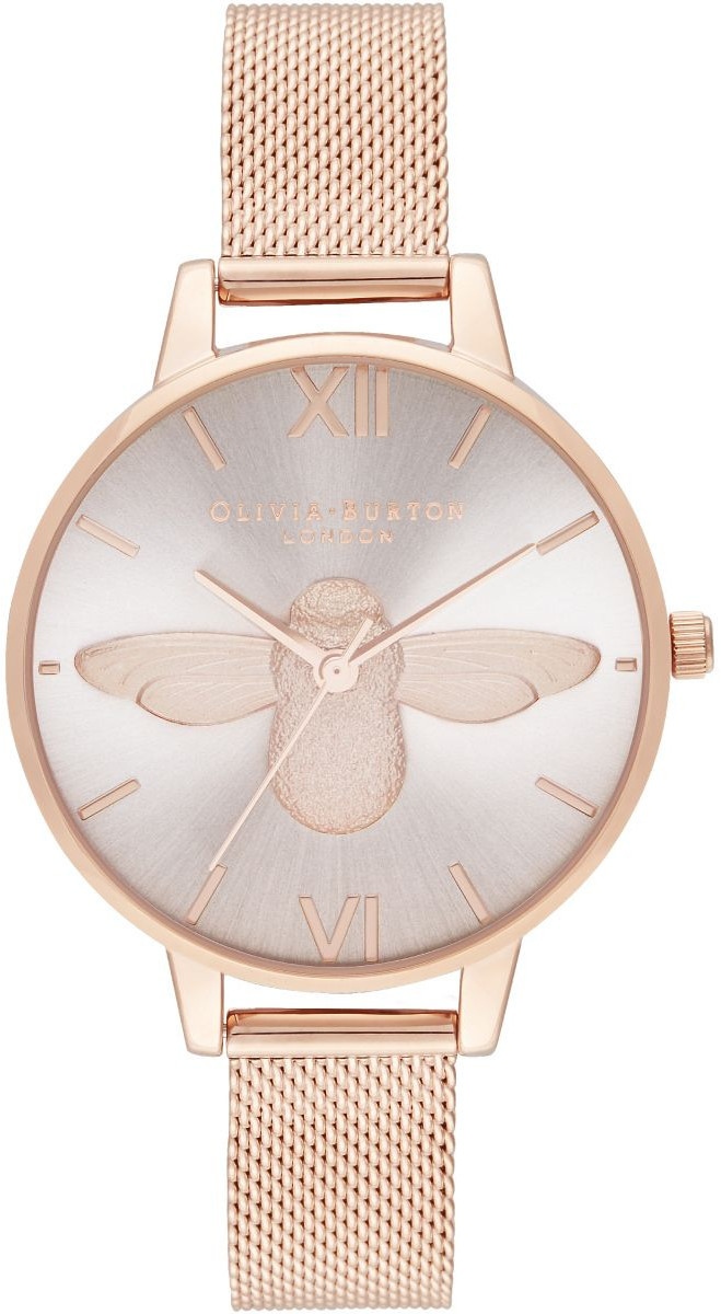 Mehiläisteemaiset Olivia Burton -kellot ovat mallistomme persoonallisimpia tuotteita! Demi Blush Dial & Rose Gold Mesh -kellon sunray-taulu saa upean 3D-efektinsä nimenomaan sen pinnasta kohoavasta mehiläisestä. Tässä mallissa runko on 34 mm leveä ja valmistettu ruostumattomasta teräksestä. Punakullanhohtoisen ulkomuodon kruunaa kaunis mesh-ranneke.