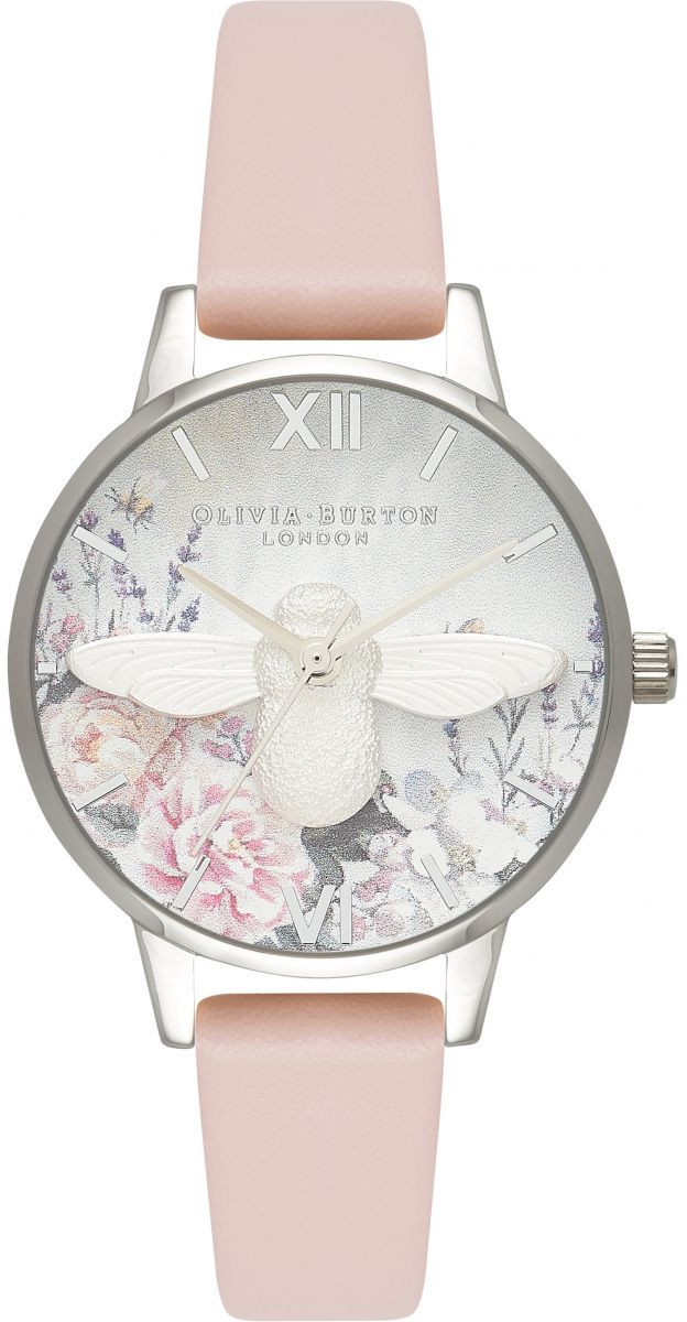 Mehiläisteemaiset Olivia Burton -kellot ovat mallistomme persoonallisimpia tuotteita! Glasshouse Nude Peach & Silver -kellon kukallinen kellotaulu saa upean 3D-efektinsä nimenomaan sen pinnasta kohoavasta mehiläisestä. Tässä mallissa runko on 30 mm leveä ja valmistettu ruostumattomasta teräksestä. Nuden-/persikanvärinen ranneke on materiaaliltaan mukavan pehmeää nahkaa.