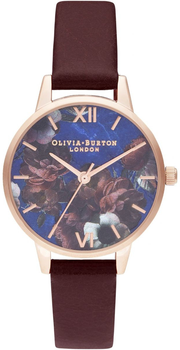 Olivia Burton Midi Lapis Lazuli & Burgundy -rannekellon kukkakuvioisessa taulussa on käytetty pohjana upeaa lapislatsuli-kiveä. Kellon runko on 30 mm leveä ja valmistettu ruostumattomasta teräksestä. Ranneke puolestaan on materiaaliltaan mukavan pehmeää nahkaa. Laadukas japanilainen koneisto pitää kellon aina oikeassa ajassa.