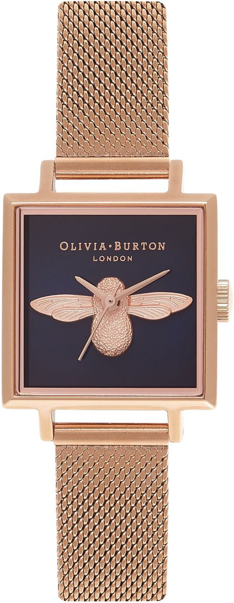Mehiläisteemaiset Olivia Burton -kellot ovat mallistomme persoonallisimpia tuotteita! Square Dial 3D Bee Midnight & Rose Gold Mesh -kellon neliskanttinen taulu saa upean 3D-efektinsä nimenomaan sen pinnasta kohoavasta mehiläisestä. Tässä mallissa runko on 22,5 mm leveä ja valmistettu ruostumattomasta teräksestä. Punakullanhohtoisen ulkomuodon kruunaa kaunis mesh-ranneke.