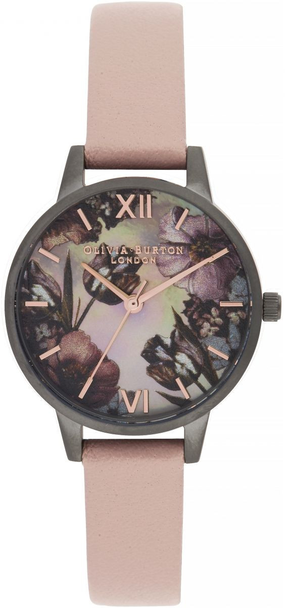 Twilight-sarja tuo uutta ilmettä Olivia Burton -kellojen perinteisempiin kukkakuoseihin. Helmiäistauluinen Midi Dial Watch with Grey Mother-Of-Pearl OB16TW04 on upea yhdistelmä tummia värisävyjä ja naisellista eleganssia. Kellon runko on 30 mm leveä ja materiaaliltaan harmaaksi pinnoitettua ruostumatonta terästä. Ranneke on tyylitelty pehmeästä, vaaleanpunaisesta nahasta.