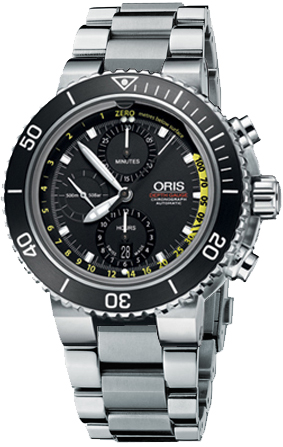 Oris Aquis Depth Gauge Chronograph 01 774 7708 4154-Set MB -rannekello seuraa alkuperäisen Oriksen Depth Gauge-sukeltajankellon jalansijoilla ja kellossa on tutut ominaisuudet kuten huippulaadukas Oriksen 774-automaattikoneisto, syvyysmittari ja keraaminen pyörivä kellokehä. Kellon osoittimet ja indeksit on pinnoitettu superluminova BG9 pigmentillä, jonka vuoksi ne näkyvät myös pimeässä, ja 48 mm leveässä teräsrungossa istuvaa kellotaulua suojaa kovaa kulutusta kestävä naarmuuntumaton safiirilasi. Kellon ominaisuuksiin kuuluu myös päivyri, minuuttinäyttö, ajanotto ja tuntinäyttö. 774 -automaattikoneisto pohjautuu Sellitan 500-koneistoon, ja sen 25-kivisessä koneistossa 48 tunnin käyntivara. Kello toimitetaan omassa erikoisrasiassa, jossa tulee mukana työkaluja sekä kumiranneke. Oris-kelloille myönnetään 2 vuoden takuu ja ne toimitetaan valmistajan alkuperäisessä rasiassa.