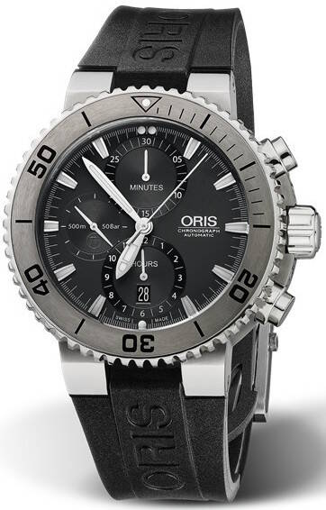Oris Aquis Titan Chronograph 01 674 7655 7253-07 4 26 34TEB on näyttävä titaanirunkoinen sukeltajankello. Mallissa on Oris 674 -automaattikoneisto, joka pohjautuu Etan 7750 -automaattikoneistoon. 25 kivisessä koneistossa 48 tunnin käyntivara. Kellon rungon leveys on 46mm. Oris kelloille myönnetään 2 vuoden takuu ja ne toimitetaan valmistajan alkuperäisessä rasiassa.