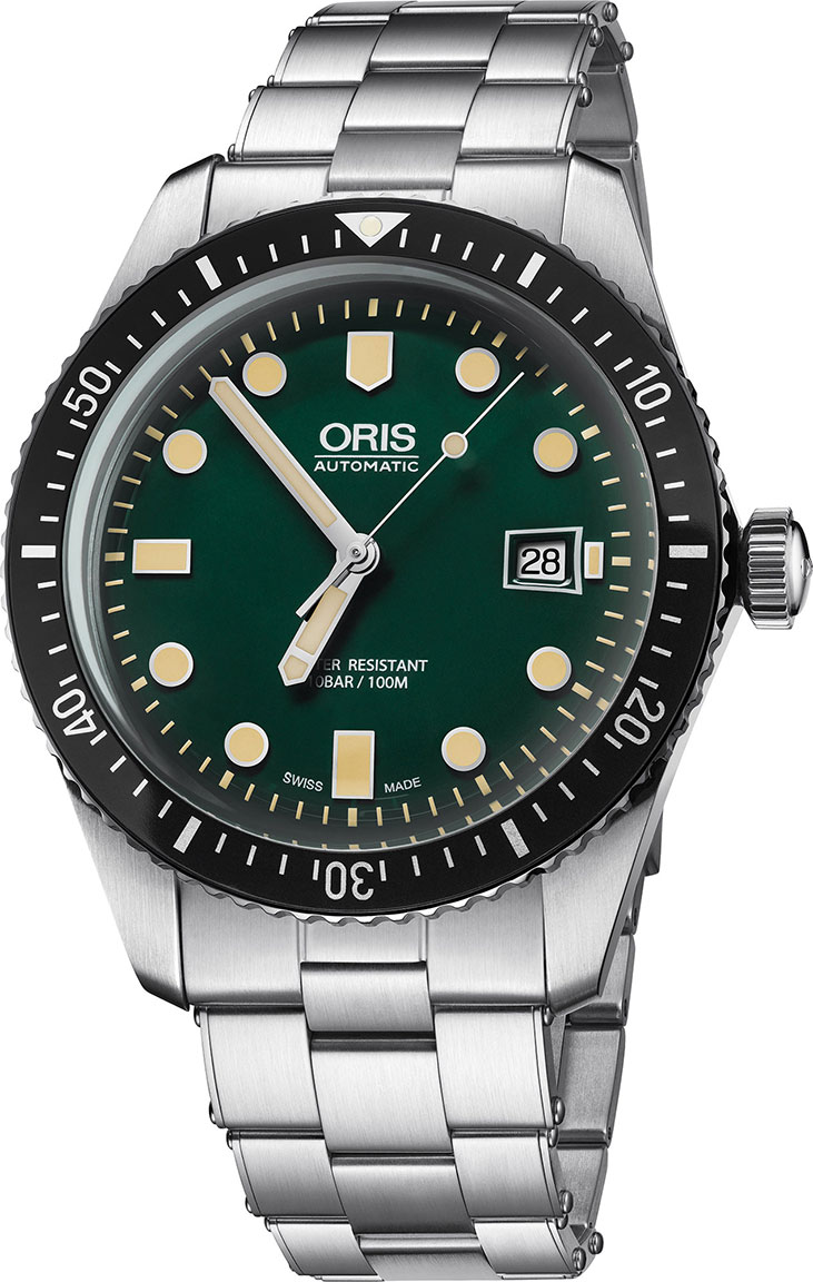 Oris Divers Sixty-Five 01 733 7720 4057-07 8 21 18 -kellossa on selkeät luminoituvat indeksit ja viisarit. Tässä mallissa on teräsranneke ja vihreä kellotaulu. Kello on 100m/10ATM vesitiivis. Koneistona on Oris 733 -automaattikoneisto, jossa on 38 tunnin käyntivara. Kellon rungon leveys on 42mm. Oris kelloille myönnetään kahden vuoden takuu ja ne toimitetaan valmistajan alkuperäisessä rasiassa.