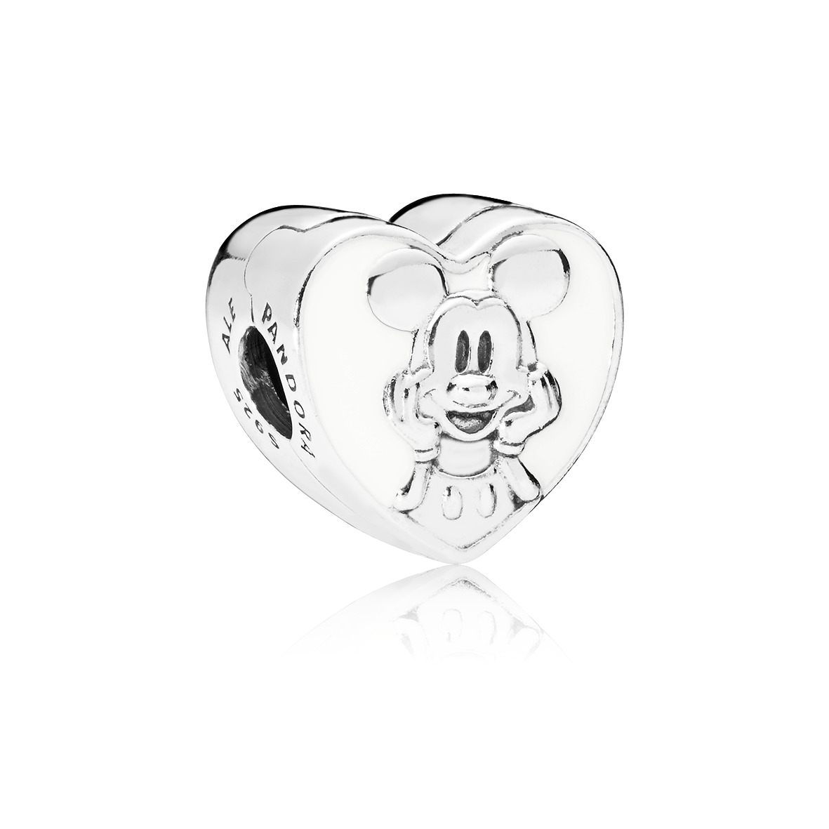 Pandoran Disney -sarjaan on ikuistettu rakastetuimmat piirroshahmot vuosien varrelta. Heistä kenties se kaikkein valloittavin, Mikki Hiiri, nojailee onnellisena käsiinsä tässä Vintage Mickey 797169EN12 -lukkopalassa. Hopeisessa, sydämenmuotoisessa palasessa on käytetty koristeena myös valkoista emalia. Lukkopalan voi pujottaa normaalisti koruun tai sen voi asettaa ja lukita paikalleen korussa olevien kierteiden päälle. Tällä tavoin koruun ei jää "tyhjiä" kohtia.