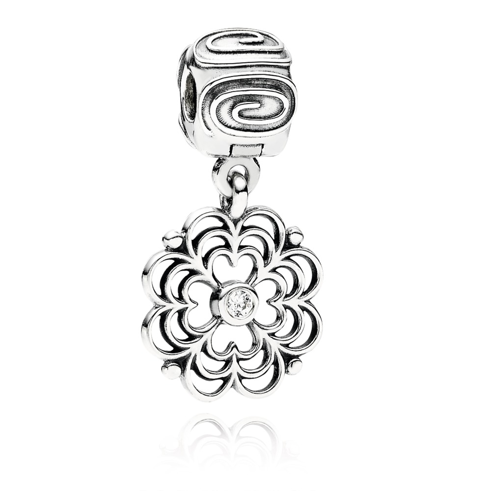 Hopeasta valmistettu Pandora 790812CZ Kehäkukka lukkopala. Helasta roikkuu kukka, jonka keskellä on kirkas zirkonia-koristekivi. Pandora helat toimitetaan postikuluitta valmistajan alkuperäisessä lahjapakkauksessa.