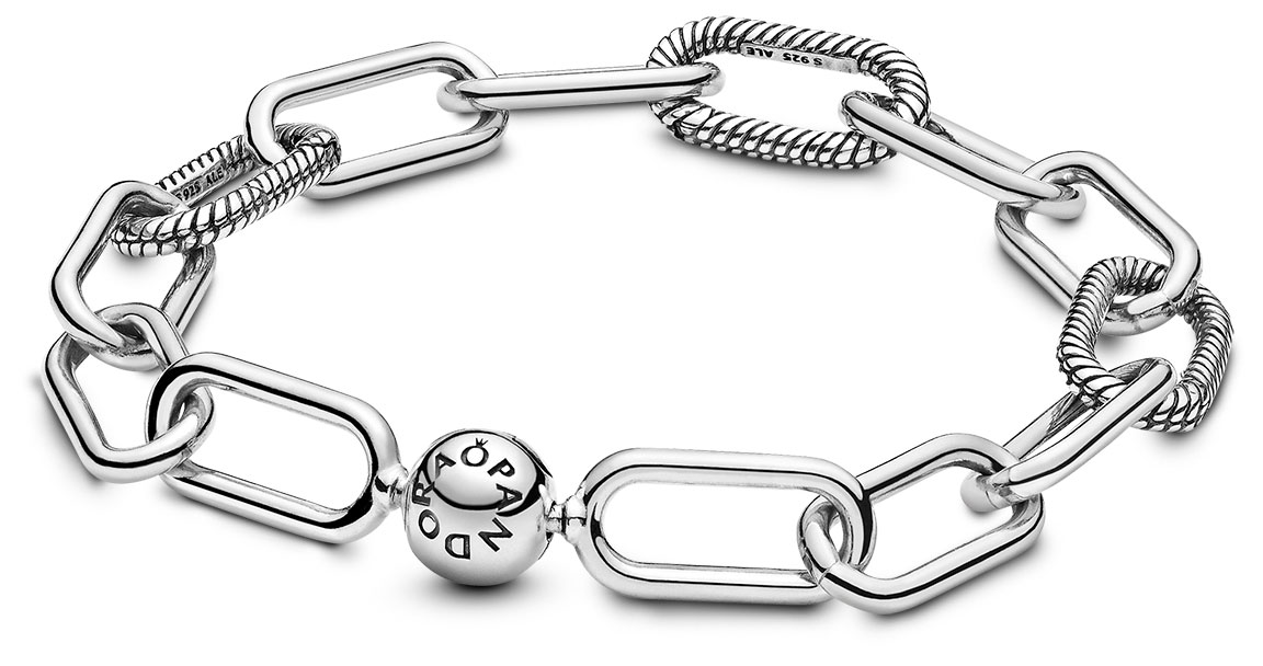 Pandora Me Link Bracelet 598373 on osa Pandora Me -mallistoa. Me Link -rannekoru on valmistettu sterling-hopeasta. Hopeanvärinen koru on kooltaan 9,9 x 7,2 x 2,7 mm, ja se on koristeltu säihkyvin zirkonioin.