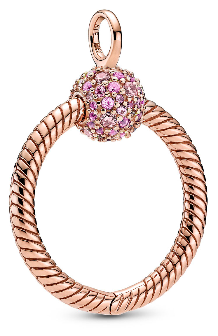 Pandora Moments Pavé O Small riipus 389097C01 on punakullattu ja vaaleanpunaisilla zirkonioilla koristeltu riipus. Tee riipuksesta entistä näyttävämpi pujottamalla siihen heloja tai pienempiä riipuksia! Pujota riipus haluamaasi ketjuun (esim. Pandora Beaded chain ketju 60cm 399104C00-60). Riipus on valmistettu aidosta sterling-hopeasta. Pandora-korut toimitetaan valmistajan alkuperäisessä rasiassa.