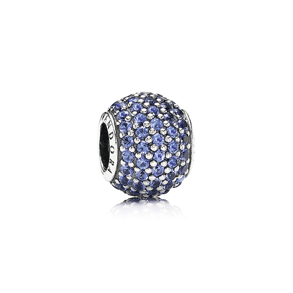 Hopeasta valmistettu Pandora 791051NCB Pave-pallohela. Helassa kiertää kauttaaltaan sinisiä zirkonia-koristekiviä. Pandora helat toimitetaan postikuluitta valmistajan alkuperäisessä lahjapakkauksessa.