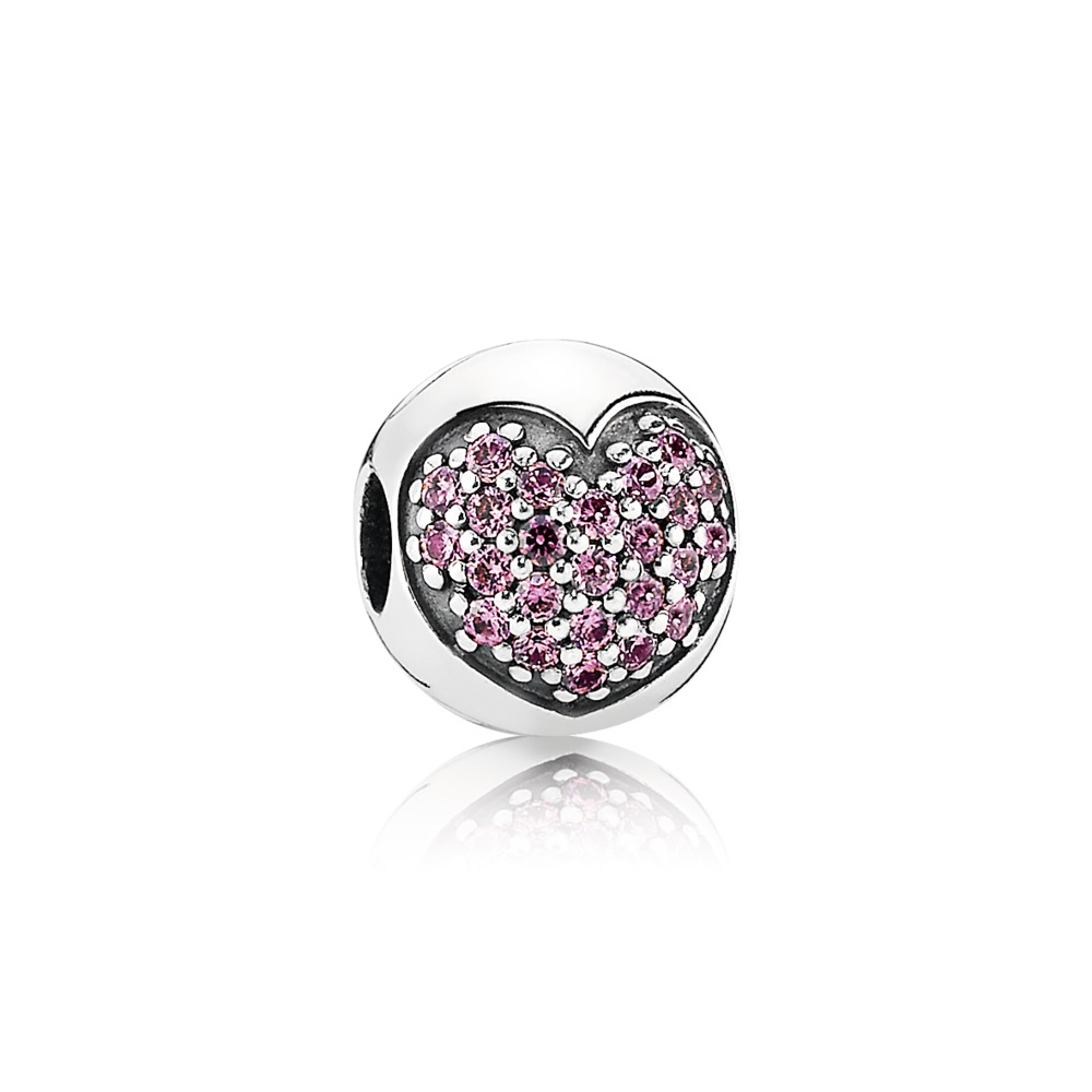 Hopeasta valmistettu Pandora 791053CZS Pavesydän-lukkopala. Palaan on upotettu sydämen muotoisesti vaaleanpunaisia zirkonia-koristekiviä. Pandora helat toimitetaan postikuluitta valmistajan alkuperäisessä lahjapakkauksessa.