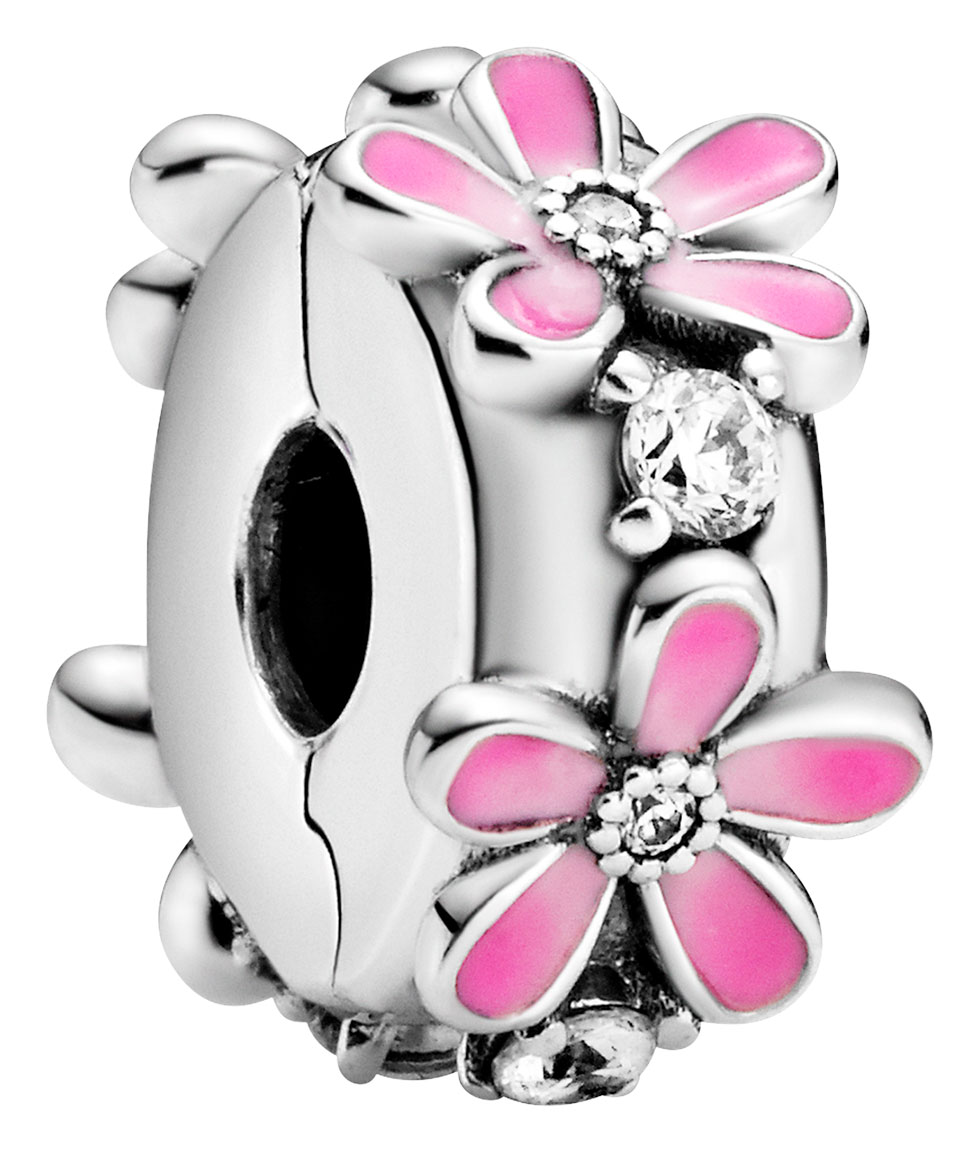 Pandora Moments -sarjaan kuuluva Pink Daisy Flower 798809C01 -hela on valmistettu sterling-hopeasta, ja se on koristeltu zirkoniolla ja vaaleanpunaisilla kukilla. Helan mitat ovat 12,4 x 6,8 x 12,4 mm. Pandora-korut toimitetaan valmistajan alkuperäisessä pakkauksessa.