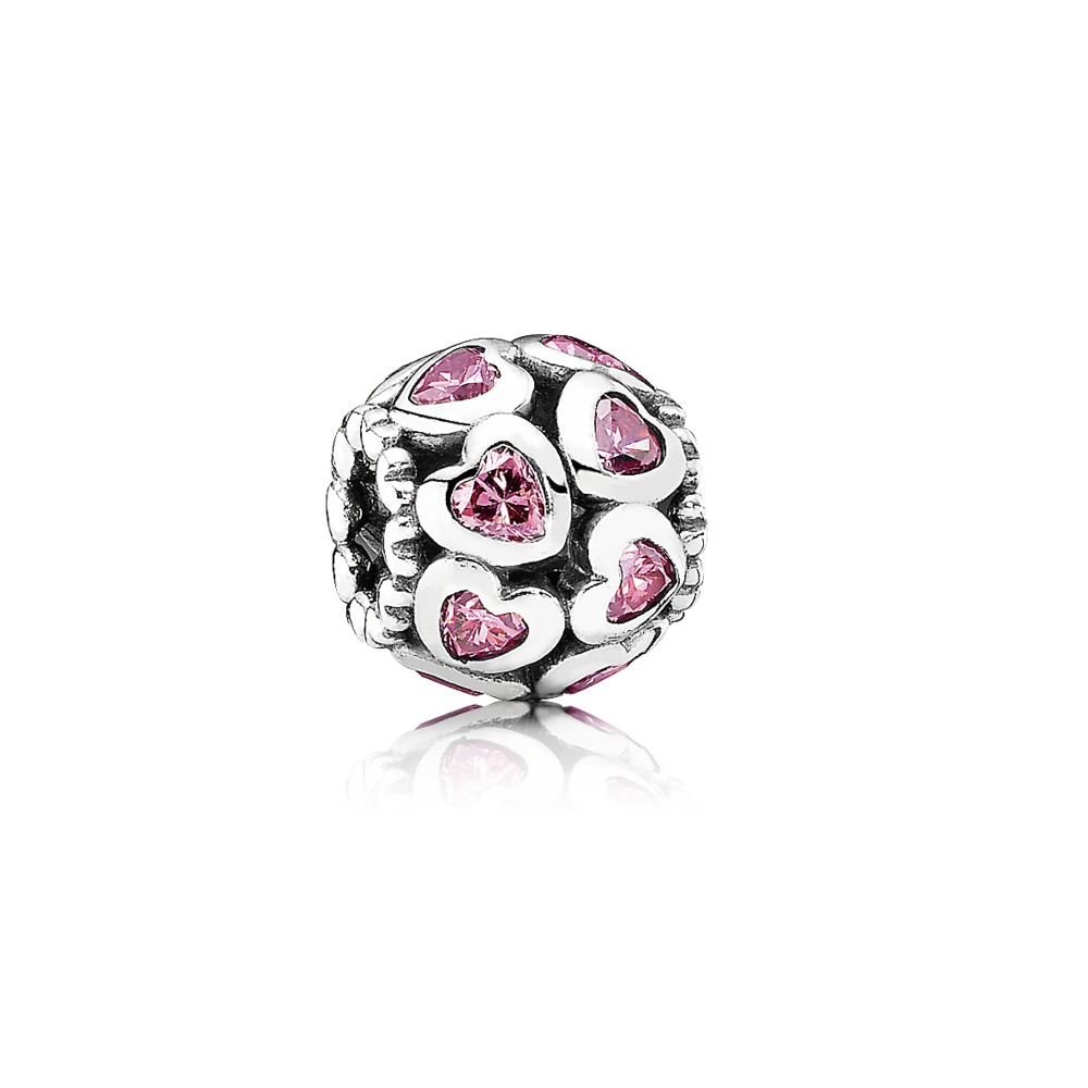 Hopeasta valmistettu Pandora 791250CZS Rakkauden Siteet-hela. Helassa on pinkkejä zirkonia-koristekiviä. Pandora helat toimitetaan postikuluitta valmistajan alkuperäisessä lahjapakkauksessa.