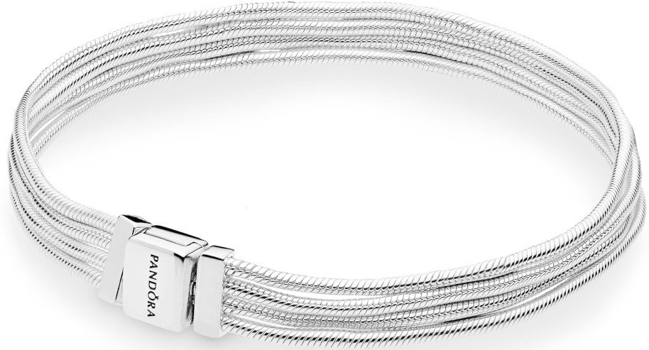 Useat ohuet punotut käärmeketjut antavat tyylikkään ilmeen Pandora Reflexions 597943-rannekorulle. Rannekorua voi käyttää yksinään tai somistaa yhteensopivilla Reflections-heloilla ja koruilla, ja se on 4,5 mm paksu ja 7,8 mm korkea. Koru on valmistettu sterling-hopeasta. Pandora-korut toimitetaan valmistajan alkuperäisessä pakkauksessa.