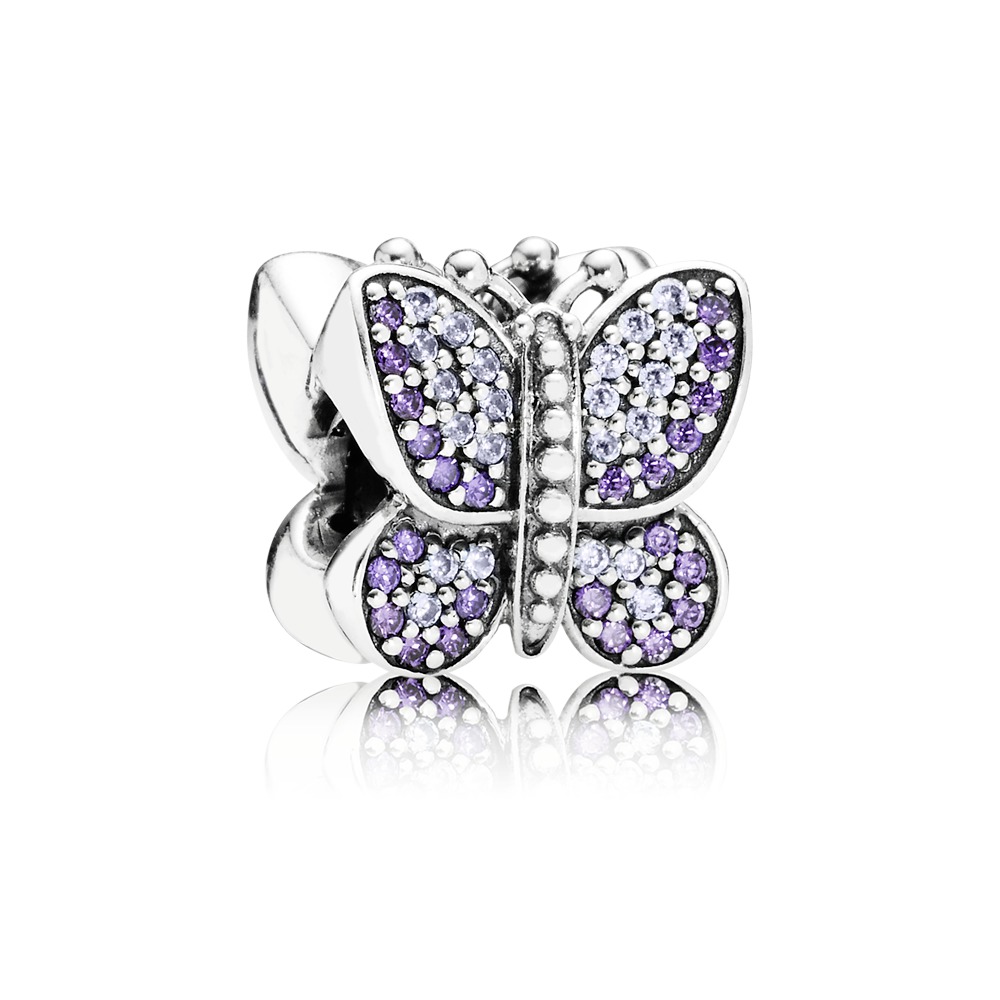 Hopeasta valmistettu Pandora 791257ACZ Säihkyvä perhonen-hela. Helassa on violetteja sekä kirkkaita zirkonia-koristekiviä. Pandora helat toimitetaan postikuluitta valmistajan alkuperäisessä lahjapakkauksessa.